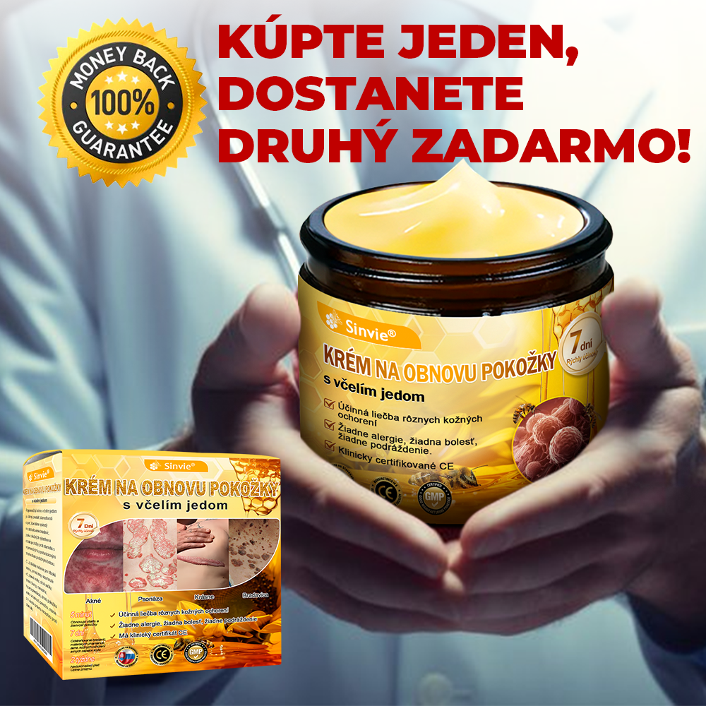 Krém na obnovu pokožky s včelím jedom je účinný pro rôzne kožné problémy, pretože obsahuje unikátnu zmes bioaktívnych zlúčenín nachádzajúcich sa vo včelom jede. Má preukázané protizápalové a antibakteriálne vlastnosti, rovnako ako silné enzýmy účinné proti rôznym kožným problémom.